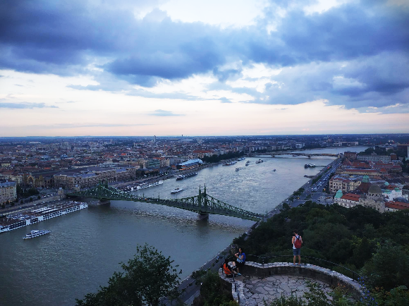 조금씩 위로 가다 보면 놀이터도 몇 군데 있다. 나는 평소 놀이터를 좋아해서 잠시 클라이밍 놀이터에서 놀고 싶었지만 친구가 컨디션이 좀 안 좋아 보인다. 더 올라가니 나도 등산에 지쳐버렸다. 은근 언덕 오르기가 고되다. 그렇게 한참 올라가니 전망대가 있어서 탁 트인 도나우 강 전경을 바라볼 수 있다. 하지만 아직 자유의 여인상은 멀어 보인다.